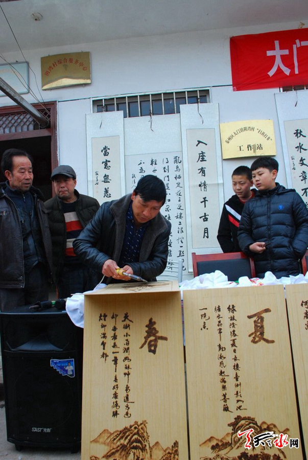 從大年三十開(kāi)始,秦州區(qū)大門(mén)鎮(zhèn)陰灣村的文化廣場(chǎng)一天比一天熱鬧,更加讓村民們高興的是,今年除了扭秧歌、唱社火之外,鎮(zhèn)上返鄉(xiāng)過(guò)年的烙鐵畫(huà)藝人、書(shū)畫(huà)家、教授、博士也都聚集在廣場(chǎng)上,在觀看演出之余,探討怎樣結(jié)合自己的專(zhuān)業(yè)特長(zhǎng),為村里的傳統(tǒng)竹編手藝融入更多的藝術(shù)特色。