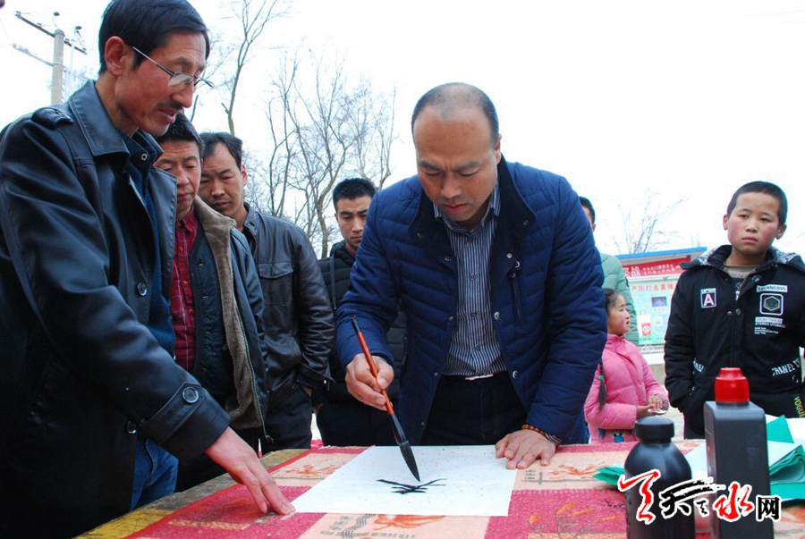 “門(mén)前漢水萬(wàn)畝田,東籬秋菊一炊煙”。就在記者采訪張建榮的時(shí)候,專(zhuān)程趕回村里的蘭亭書(shū)畫(huà)院院長(zhǎng)張首文,已經(jīng)鋪開(kāi)紅紙給村民寫(xiě)對(duì)聯(lián)了,更讓村民們倍感親切和自豪的是,張首文撰寫(xiě)的對(duì)聯(lián),有好多都是由他本人創(chuàng)作,描寫(xiě)、抒發(fā)、寄情于家鄉(xiāng)山水和風(fēng)土人情的詩(shī)歌,這樣的對(duì)聯(lián),每一副寄托著張首文和村民們對(duì)家鄉(xiāng)的熱愛(ài)與眷戀。