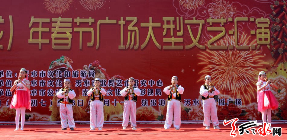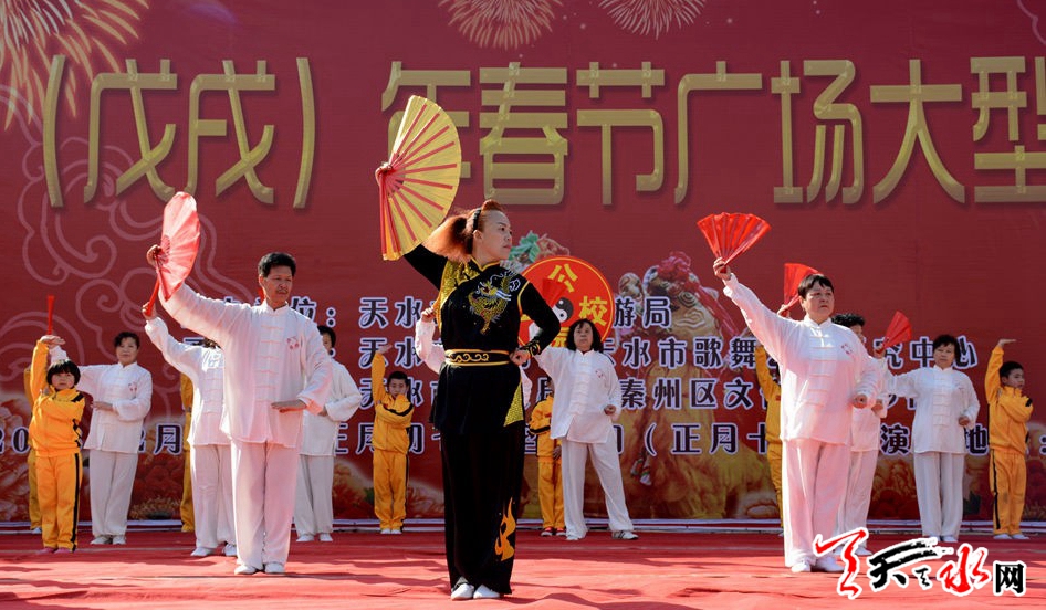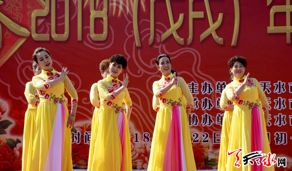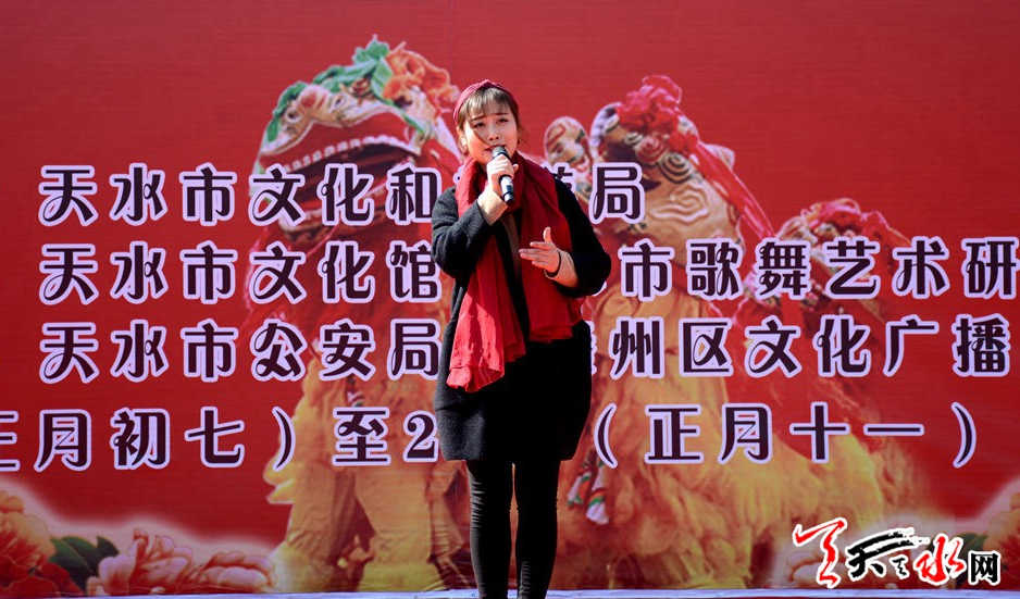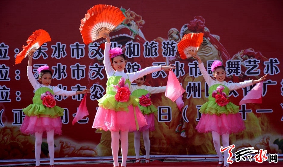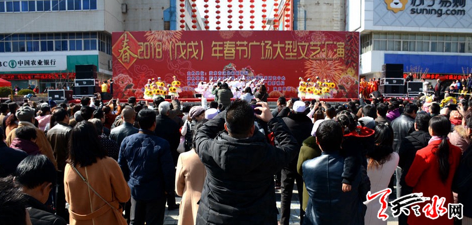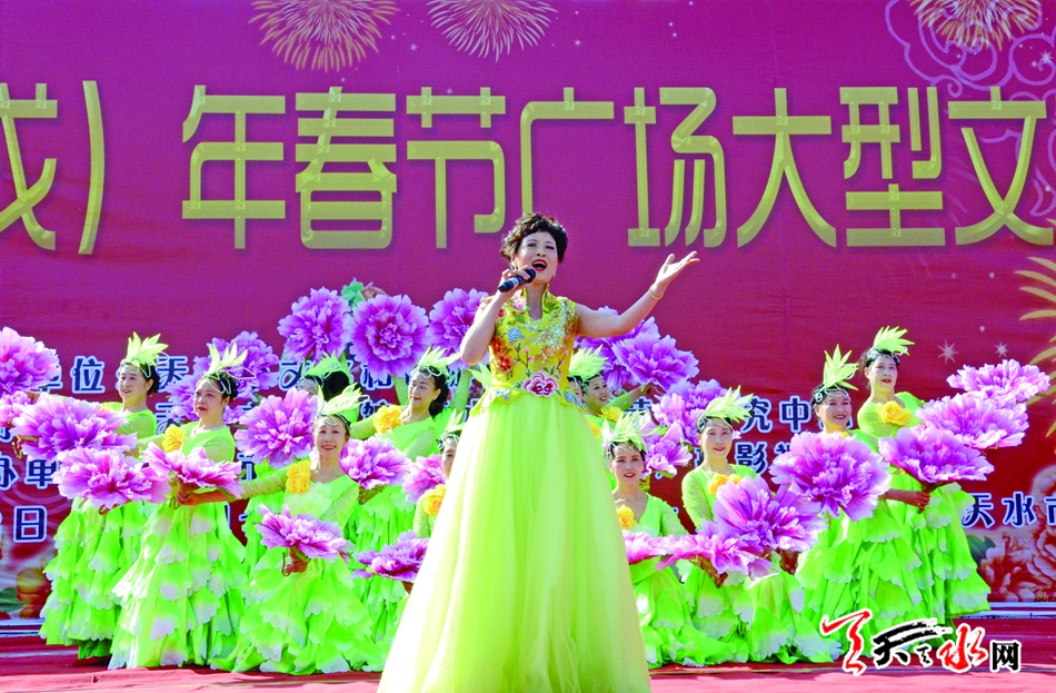??????2月22日,由天水市文化和旅游局主辦,天水市文化館、天水市歌舞藝術(shù)研究中心承辦的“金犬報春”2018(戊戌)年廣場春節(jié)文化惠民演出在天水龍城廣場舉辦?!逗椭C陽光》《共圓中國夢》《紅高粱九兒》《天河熱土》等十余個節(jié)目,讓群眾享受了一場文化盛宴。據(jù)悉,活動將持續(xù)至2月26日(正月十一)。 記者徐媛 攝