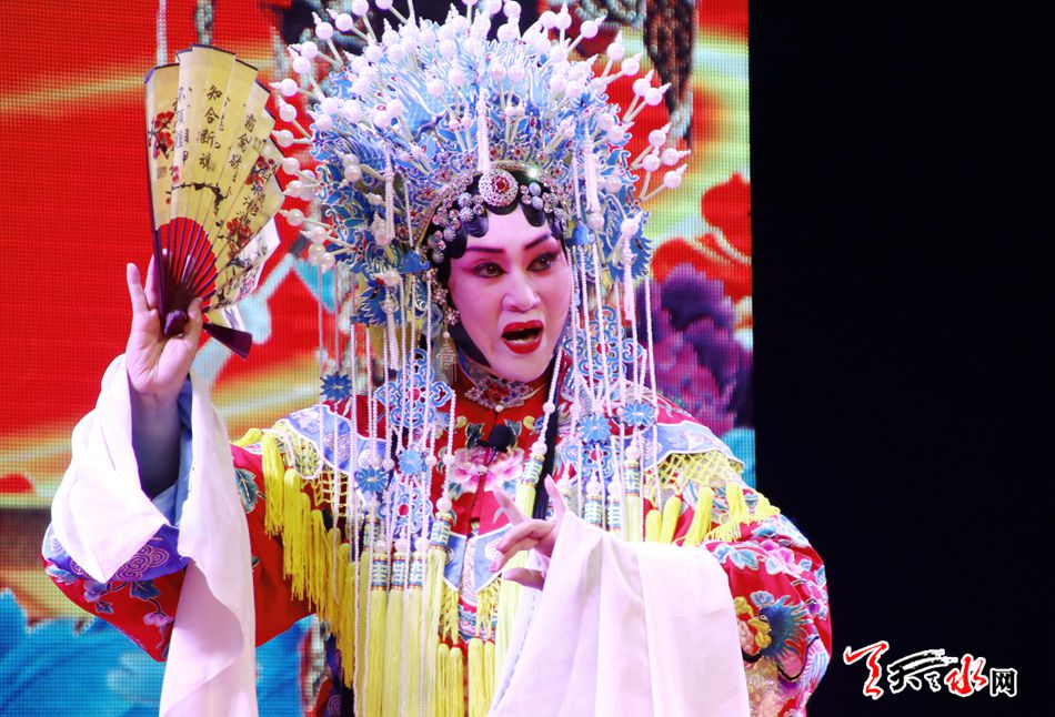 在頒獎儀式上,獲得本次大賽一、二、三等獎的參賽選手王新平、王小梅、李雯、汪洋等分別為觀眾表演了《三堂會審》《楊門女將》等精彩秦腔選段。中國第二十八屆戲劇梅花獎獲得者、中國秦腔四小名旦、天水市戲劇家協(xié)會主席,國家一級演員袁丫丫,著名秦腔表演藝術(shù)家、國家二級演員李秋芳、胡雪梅等評委老師也登臺獻(xiàn)藝,一展風(fēng)姿。