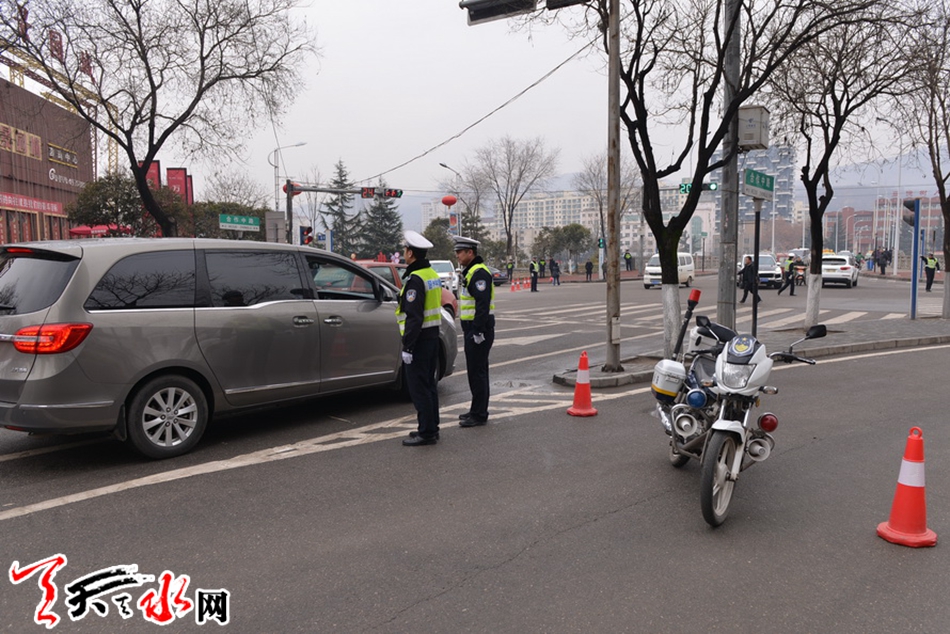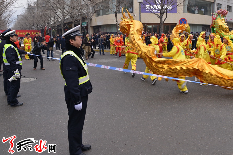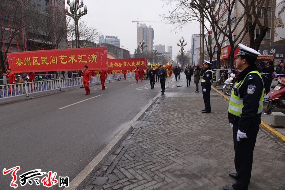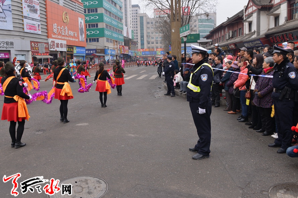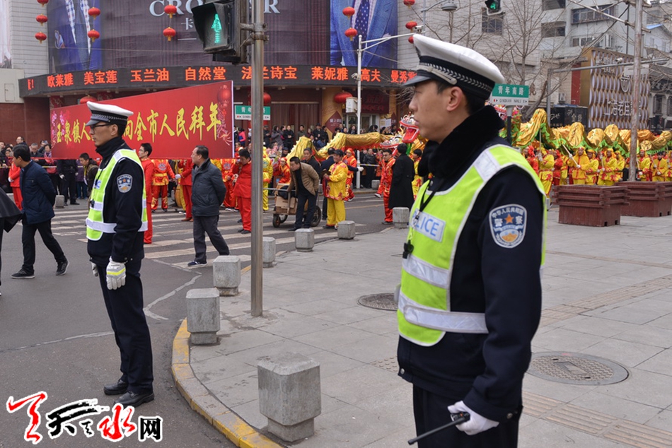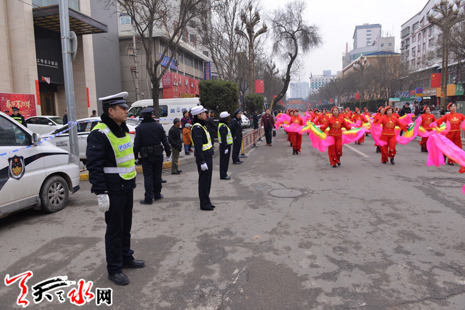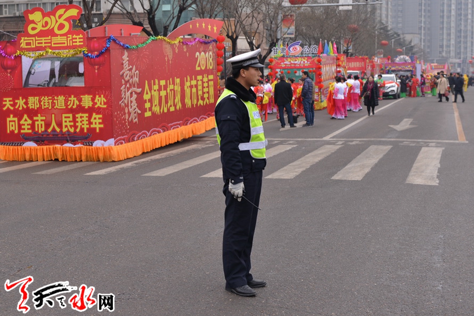 ????天天天水網(wǎng)訊(通訊員劉冀遠(yuǎn))2月27日(農(nóng)歷正月十二)上午,天水市秦州區(qū)鑼鼓喧天、龍騰獅舞,處處洋溢著歡樂喜慶的節(jié)日氛圍,引得市民紛紛駐足觀看。為保障2018年秦州區(qū)春節(jié)民間藝術(shù)匯演活動(dòng)順利舉行,天水公安交警部門根據(jù)轄區(qū)實(shí)際,結(jié)合歷年活動(dòng)保障經(jīng)驗(yàn),科學(xué)制定勤務(wù),提前向社會(huì)發(fā)布出行提示信息。活動(dòng)當(dāng)天,全體執(zhí)勤交通民警及協(xié)管員按時(shí)到崗到位,對合作巷十字、藉濱橋十字、重新街北口等路段進(jìn)行臨時(shí)交通管制,指揮車輛分流繞行,引導(dǎo)過往群眾有序觀看。?