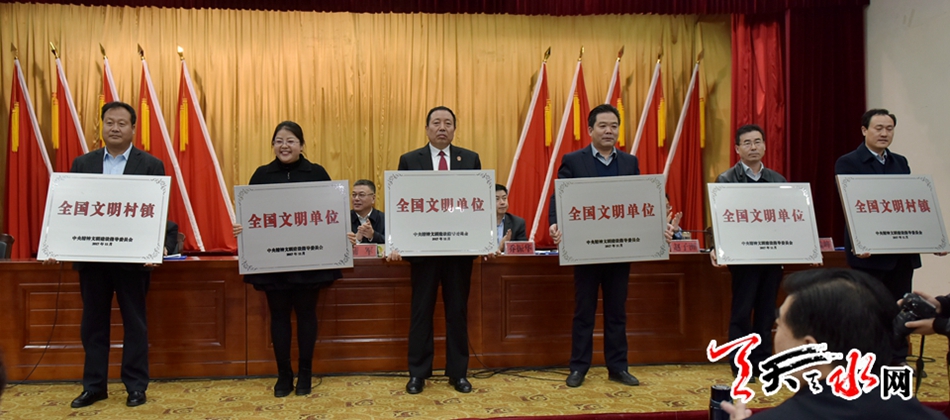 ▲市糧食局、市第三人民醫(yī)院、秦安縣人民法院、甘谷縣大像山鎮(zhèn)、麥積區(qū)新陽鎮(zhèn)胡家大莊村、秦州區(qū)天水郡街道王家磨社區(qū)分別榮獲全國文明單位、文明村鎮(zhèn)、文明社區(qū) 。
