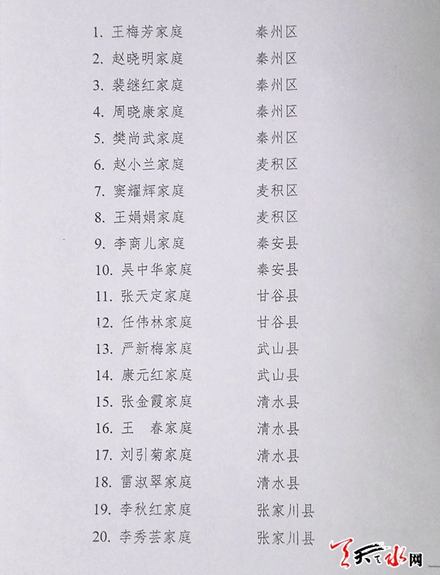 天水市文明家庭名單