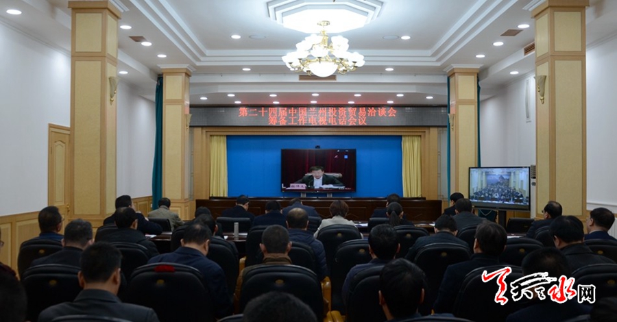 天天天水網(wǎng)訊【記者李欣桐】2月27日,第二十四屆中國蘭州投資貿(mào)易洽談會籌備工作電視電話會在蘭州召開。市委常委、副市長宮輝在天水分會場收聽收看會議。