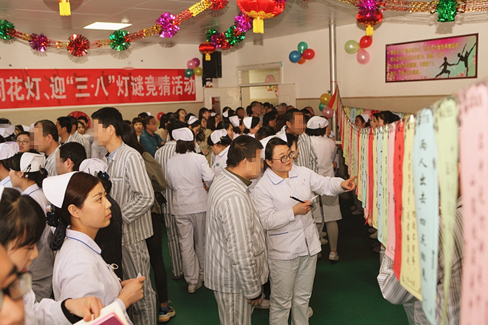 ????燈謎集錦博聰慧,朵朵花燈祝平安,喜迎佳節(jié)同歡慶,醫(yī)患共融顯真情。為弘揚(yáng)祖國(guó)傳統(tǒng)文化,豐富職工業(yè)余生活,進(jìn)一步鞏固我院全國(guó)文明單位創(chuàng)建成果,同時(shí)讓患者在住院期間也能充分感受到醫(yī)院溫馨愉快、喜慶祥和的節(jié)日氛圍。市三院在元宵節(jié)、婦女節(jié)兩節(jié)來(lái)臨期間,在院領(lǐng)導(dǎo)的大力支持和各科室的通力配合下,由工會(huì)女工委和婦委會(huì)牽頭,在藝術(shù)行為治療中心隆重舉行了醫(yī)患同慶鬧花燈,迎“三?八”燈謎競(jìng)猜活動(dòng)。