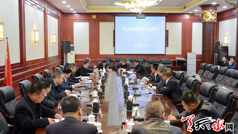 天天天水網(wǎng)訊【記者胡麗霞】3月6日,市政府與杭蕭鋼構(gòu)(集團(tuán))股份有限公司副總裁周濱一行舉行座談,雙方就鋼結(jié)構(gòu)綠色工業(yè)裝配化建筑產(chǎn)業(yè)基地項目進(jìn)行了對接座談。市委常委、常務(wù)副市長趙衛(wèi)東出席座談會。