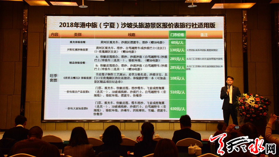 ????天天天水網(wǎng)訊【全媒體記者吳麗娜】3月8日,踏著春天的腳步,由寧夏旅游協(xié)會(huì)景區(qū)分會(huì)主辦,港中旅(寧夏)沙坡頭旅游景區(qū)、寧夏沙湖景區(qū)、賀蘭山巖畫(huà)景區(qū)、鳴翠湖景區(qū)、中衛(wèi)寺口風(fēng)景區(qū)、內(nèi)蒙通湖草原景區(qū)共同協(xié)辦的“有個(gè)景區(qū)叫寧夏”2018年寧夏景區(qū)推介及產(chǎn)品政策發(fā)布會(huì)全國(guó)巡演—天水站,在天水皇城國(guó)際飯店拉開(kāi)帷幕。