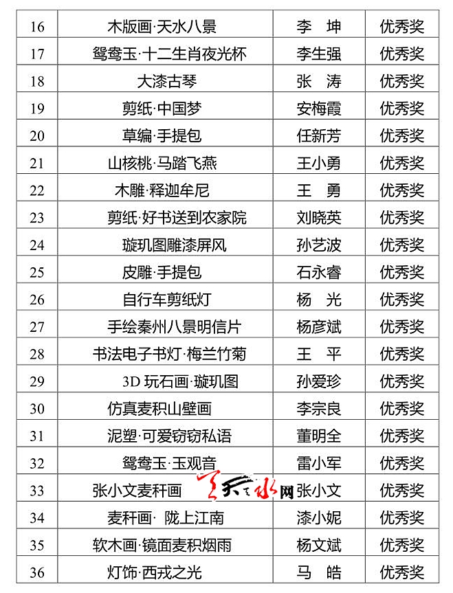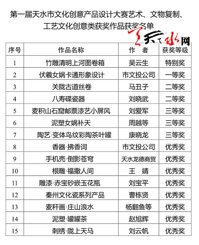 天水市首屆文化創(chuàng)意產品設計大賽獲獎作品名單