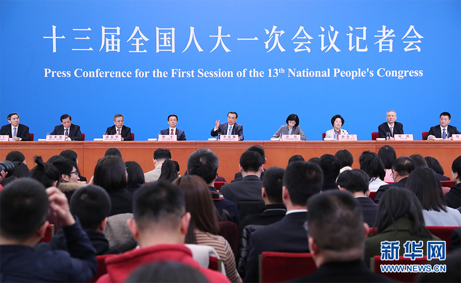 3月20日,十三屆全國人大一次會(huì)議在北京人民大會(huì)堂舉行記者會(huì),國務(wù)院總理李克強(qiáng)應(yīng)大會(huì)發(fā)言人張業(yè)遂的邀請(qǐng)會(huì)見中外記者,并回答記者提問。國務(wù)院副總理韓正、孫春蘭、胡春華、劉鶴參加。新華社記者 燕雁 攝
