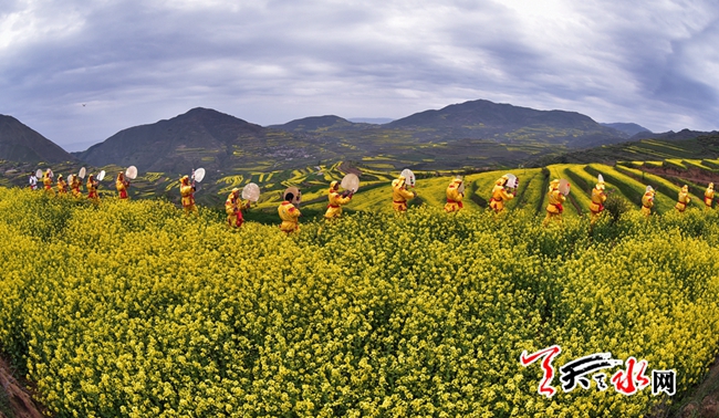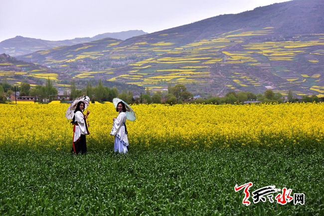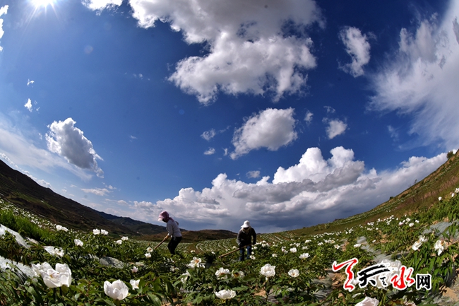 天水的春天,視野的風(fēng)景線上總是被五彩的花解讀著它的斑斕大美,春色盈野的新陽千畝杏林,“人面桃花相映紅”的秦安萬畝桃園,武山龍臺的油菜花海,還有秦州華岐成片成片的白牡丹,共同描繪出天水之間古城的盎然春韻。