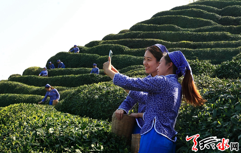 漆樹壩鎮(zhèn)萬(wàn)畝高山茶園上的采茶姑娘 徐鵬 攝