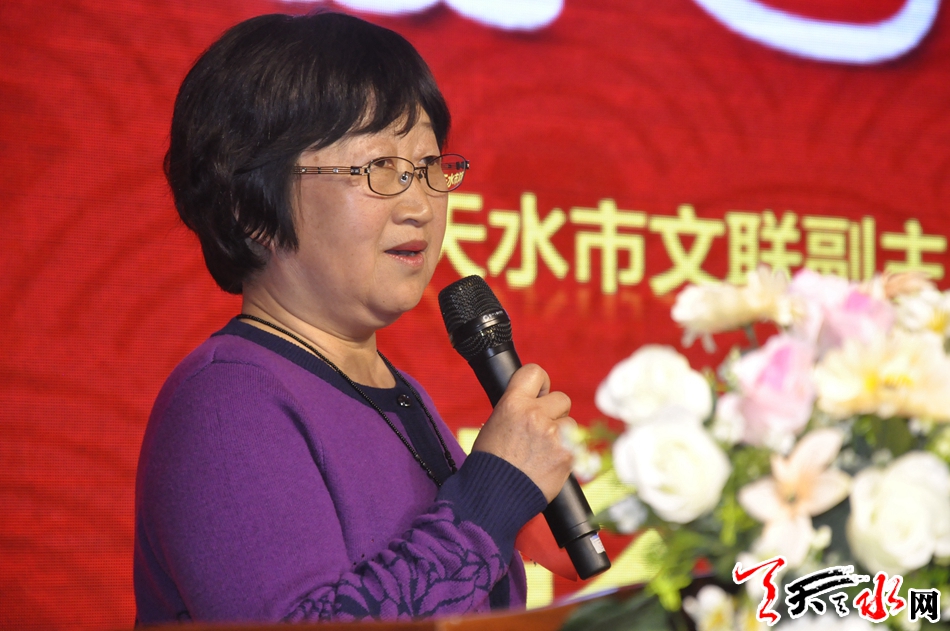 天水市書(shū)法家協(xié)會(huì)副主席彭衛(wèi)女士在活動(dòng)上講話。她對(duì)富德生命人壽天水中心支公司將傳統(tǒng)文化與企業(yè)發(fā)展、企業(yè)文化建設(shè)、客戶(hù)服務(wù)相結(jié)合的做法表示贊賞,并希望通過(guò)本次活動(dòng),為廣大書(shū)畫(huà)愛(ài)好者提供學(xué)習(xí)交流的機(jī)會(huì),共同弘揚(yáng)民族傳統(tǒng)文化。