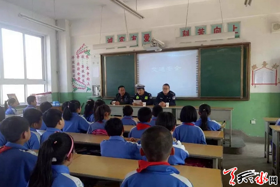 秦州郊區(qū)公安交警走進天水鎮(zhèn)中心小學、太京中心小學、大門中學、娘娘壩中學開展交通安全宣傳活動,普及交通安全知識。