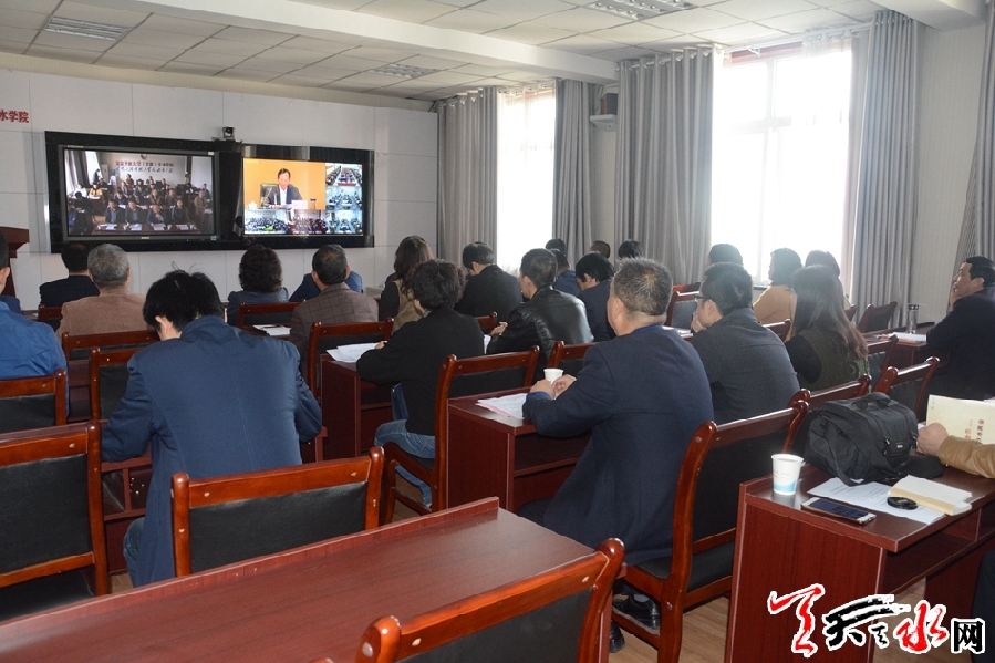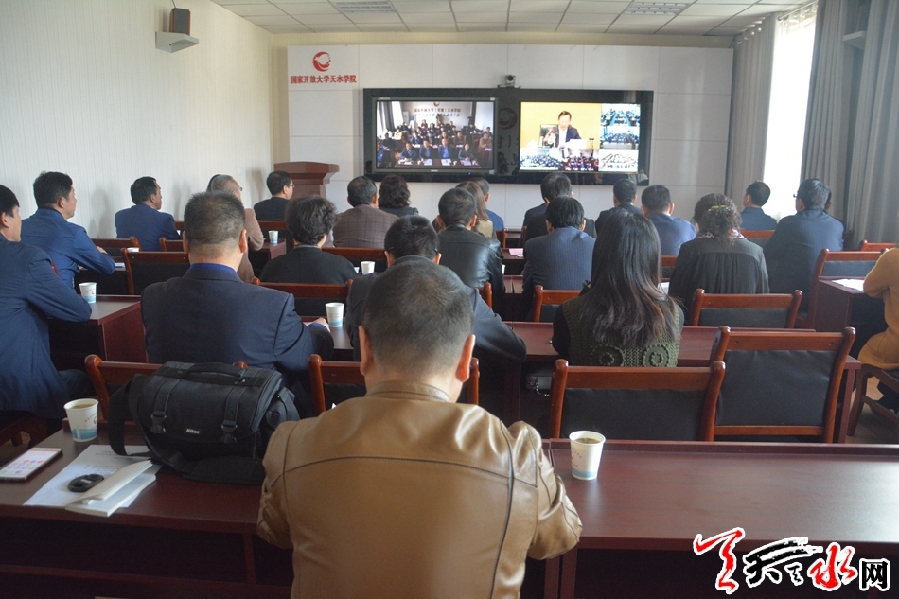 市委組織部分管領(lǐng)導(dǎo)、聯(lián)絡(luò)員、各單位學(xué)員代表在天水電大收聽收看開班儀式。