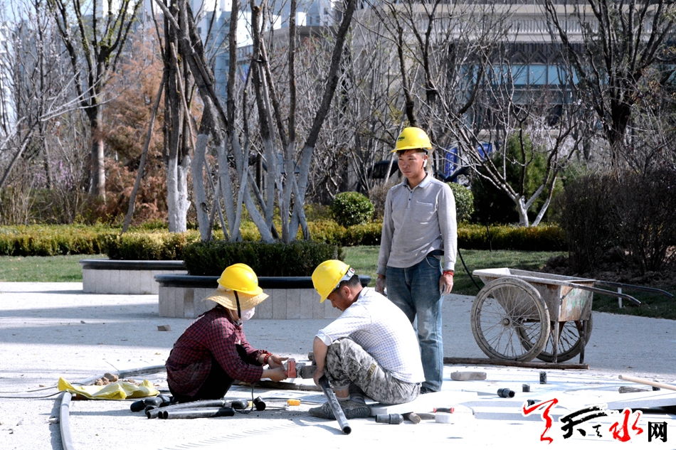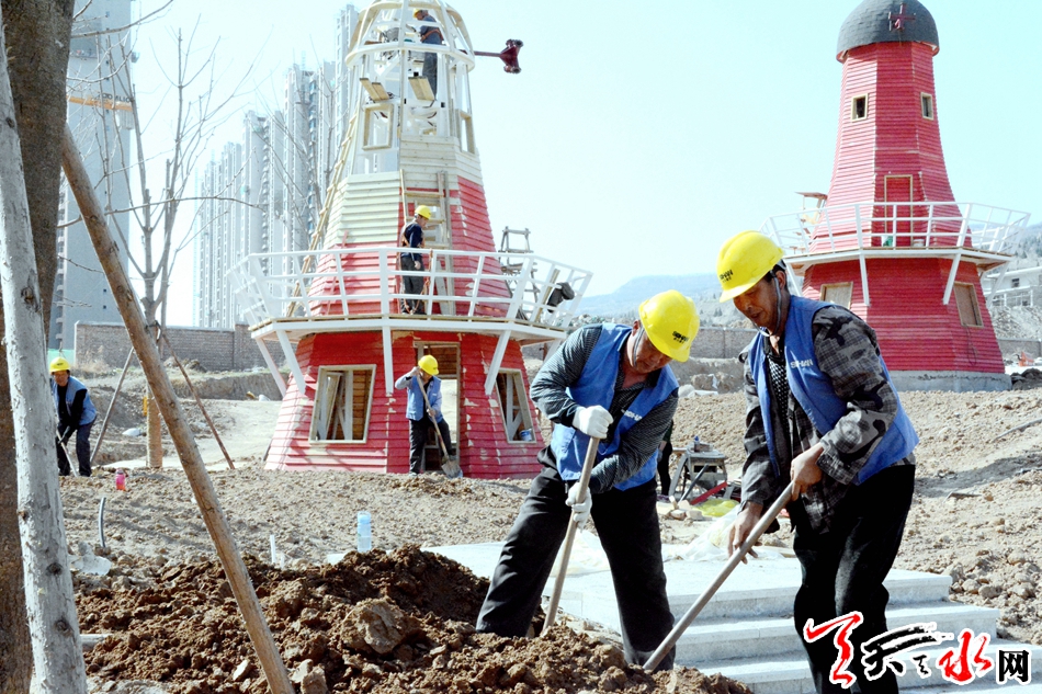 3月28日,天水成紀兒童公園項目工地工作人員正在抓緊施工。據(jù)了解,成紀兒童公園已完成喬木及部分灌木的栽植、土建、鋪裝、兒童活動器材的安裝等工程,正在實施苗木補栽、景觀節(jié)點小品及管理用房等工程,預(yù)計6月投入使用。 記者 徐媛 攝