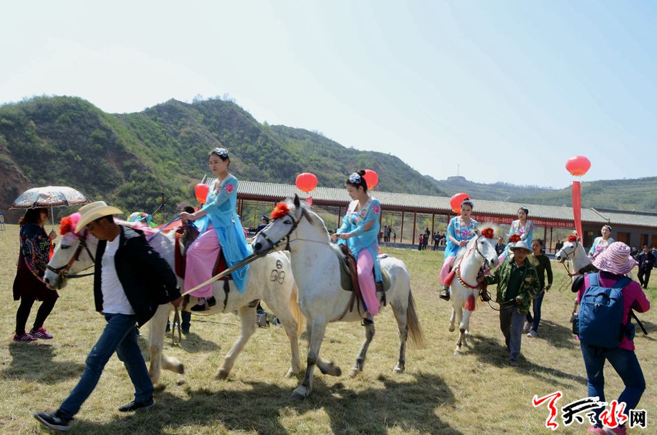 開幕式上舉辦了以“尋夢黃金花海·樂游田園風(fēng)光”為主題的文藝演出,秦嶺非物質(zhì)文化遺產(chǎn)鞭稈舞及一些獨具特色的民俗表演精彩紛呈。秦嶺籍青年歌手張狄、中國秦腔四小名旦袁丫丫、著名獨角戲表演藝術(shù)家王海生等天水本地知名藝人的助陣演出,引得現(xiàn)場觀眾喝彩。射箭場上,天水市射箭協(xié)會會員身騎駿馬,上演了精彩絕倫的傳統(tǒng)騎射表演,讓游客感受到了傳統(tǒng)的騎射魅力。