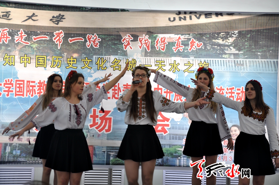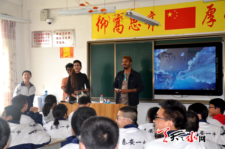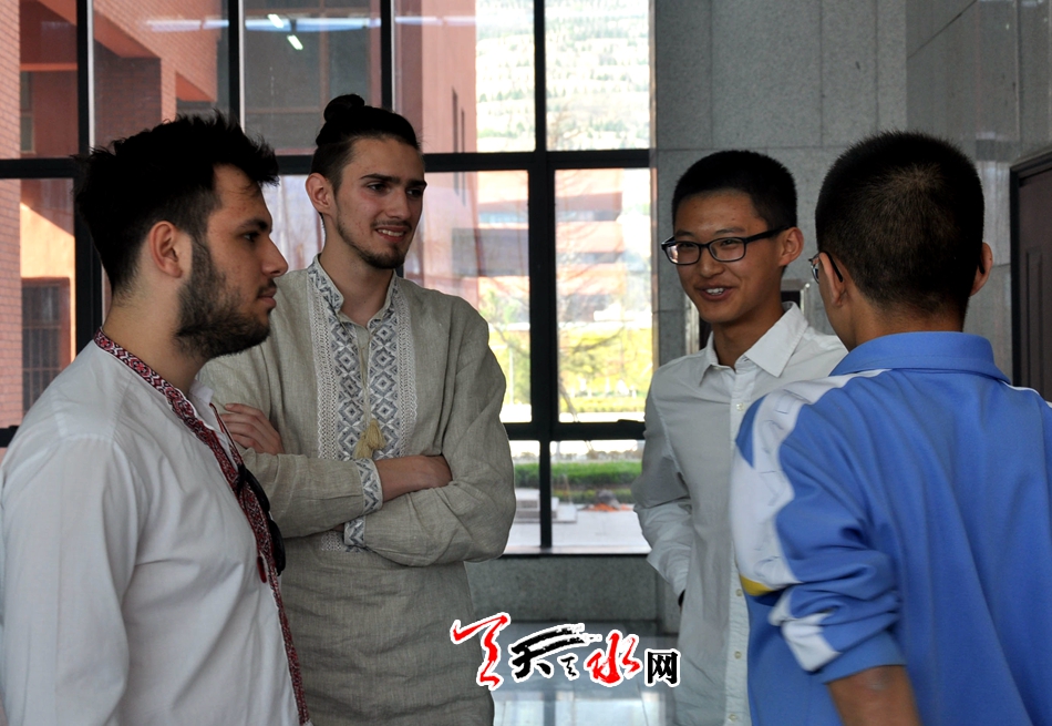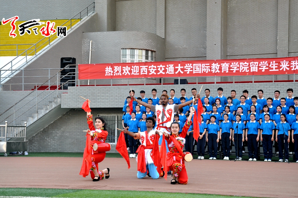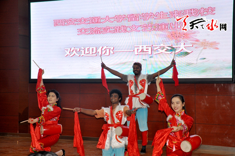 ????在市一中麥積校區(qū)、秦安一中、市二中開展活動時,來自俄羅斯、烏克蘭、烏茲別克斯坦、巴基斯坦、越南等,主要是一帶一路沿線國家的21名留學(xué)生,他們和各學(xué)校高一年級的學(xué)生們一起表演了陜北的安塞腰鼓、中國的武術(shù)以及帶有各自民族文化的舞蹈,演唱了充滿異域風(fēng)格的歌曲等節(jié)目。演出結(jié)束后,留學(xué)生還與高一年級學(xué)生開展了面對面文化交流,并和市一中麥積校區(qū)部分高一級學(xué)生一一結(jié)成了對子。