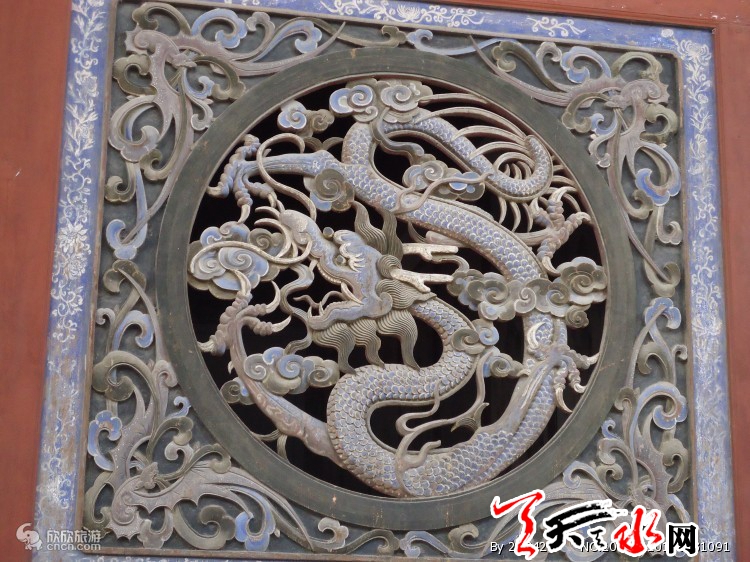 ????先天殿在中院月臺的當間部位。此殿異常宏大壯觀??粗岣吡杩?、莊重威嚴的風格,游人往往嘖嘖贊嘆。這座大殿通高二十六點七米,縱深十三點五米,面寬七間,通長二十六點四米,是一座典型的明代風格建筑。殿頂上覆琉璃簡瓦,正脊兩端亦施龍吻,垂脊、戧脊施螭獸仙人。正脊中有橋亭火珠,脊面乃飾纏枝牡丹。其奇巧精致,耐人尋味。這座宮殿的門窗雕飾工藝,堪為上選藝術品,往往吸引不少游人,由于為其精美的工藝所傾倒,而總是流連忘返。這些門窗,全系木質(zhì)結構,上面鏤刻雕飾有金錢、艾葉、仙鶴、孔雀、蝙蝠、蝴蝶,還有二龍戲珠、鹿宿松下等圖案,花紋細密,栩栩如生,有很高的欣賞價值。入大殿內(nèi),即見一中心方柱似的神龕,這便是供奉伏羲塑像的地方。完高五米有余,上根懸掛"文明肇啟"匾額,系清代嘉慶年間秦州牧王賜均所書。匾文是對伏羲始創(chuàng)八卦、教民克愚的巨大功績的高度贊頌。