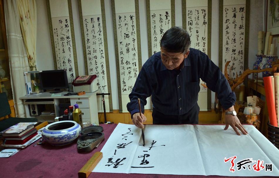 今年63歲的馬健行,天水人,世界華人書法家協(xié)會(huì)副主席、中國(guó)書法家協(xié)會(huì)會(huì)員。初次謀面,他的謙和率真,溫文爾雅,一下子拉近了與記者交流的距離。