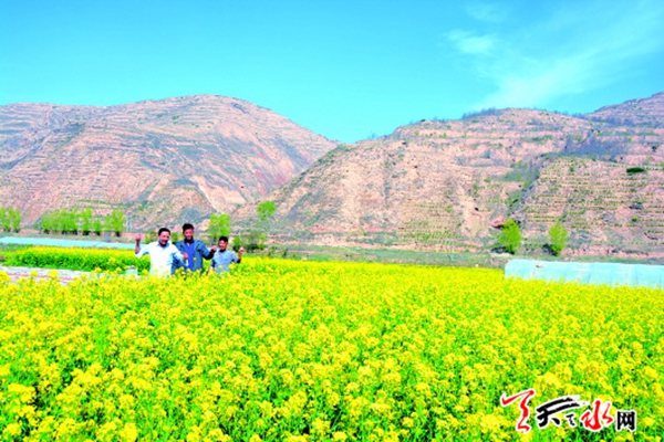 近日,在武山縣洛門鎮(zhèn)趙碾村,幾位途經(jīng)洛禮公路的游客在油菜花田里拍照留念。近年來,武山縣大力提倡農(nóng)民種植油菜花,不但使農(nóng)民增收,也為武山縣的旅游發(fā)展注入一支“生力軍”。記者 王雪梅 攝