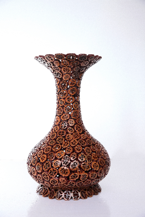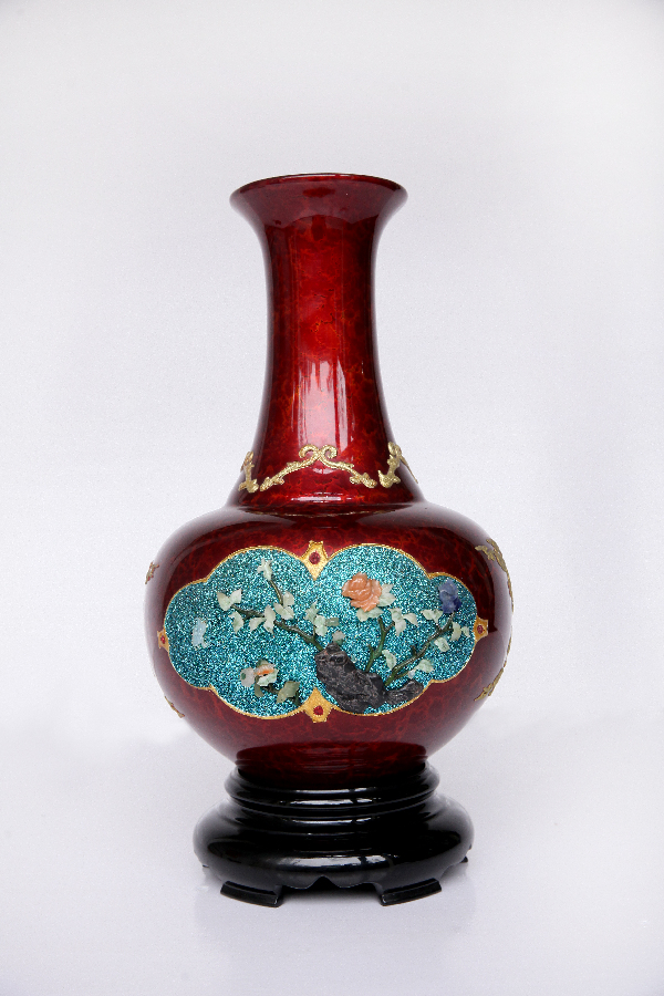 ?赤寶砂嵌玉花瓶 作者:劉寶平申報(bào)單位:天水黃河雕漆工藝有限責(zé)任公司