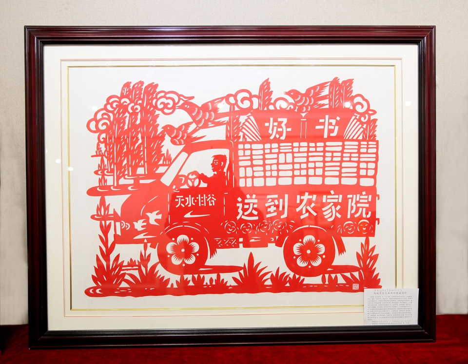 剪紙《好書送到農(nóng)家院》 作者:劉曉英 申報單位:甘谷縣文化廣播影視局
