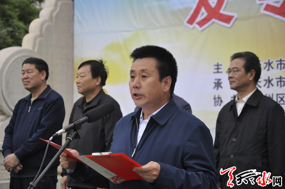 秦州區(qū)委副書記、區(qū)長劉文璽主持發(fā)令儀式并宣布天水-秦州首屆“生態(tài)南山杯”全民徒步登山活動開始。市委常委、秦州區(qū)委書記雷鳴致辭。