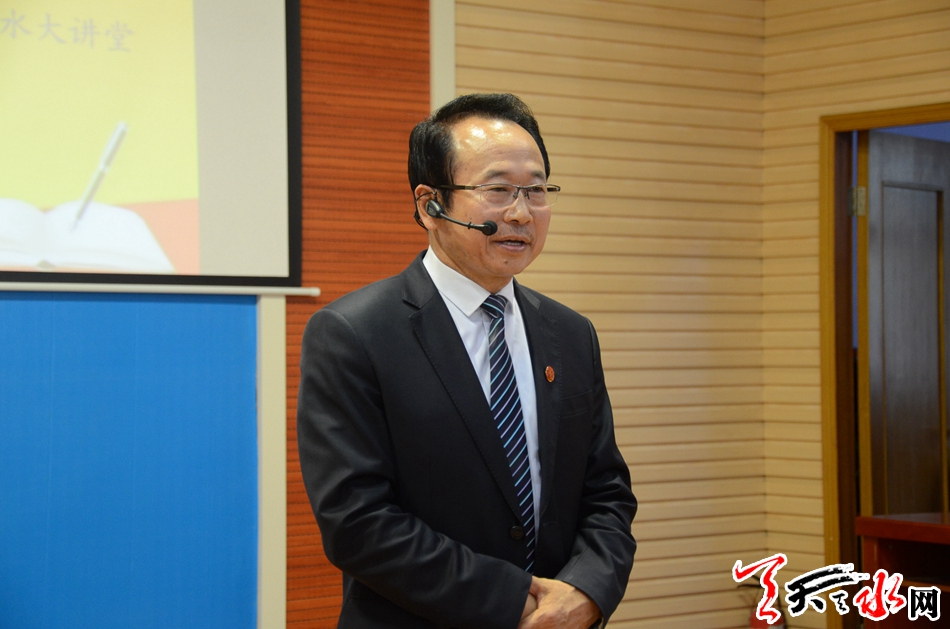 天天天水網(wǎng)訊【記者閆波】5月19日,2018年全市統(tǒng)戰(zhàn)系統(tǒng)大宣講之一“立德樹人 知行合一——培養(yǎng)社會(huì)主義建設(shè)者和接班人”專題講座在市圖書館舉辦?;顒?dòng)邀請(qǐng)了平?jīng)鍪姓f(xié)副主席、民盟平?jīng)鍪形魑?、甘肅醫(yī)學(xué)院院長(zhǎng)朱建國(guó)主講。市人大常委會(huì)副主任安志宏出席并聆聽講座。