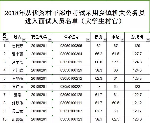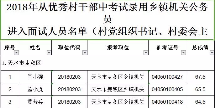 3. 天水市2018年從優(yōu)秀村干部中考試錄用鄉(xiāng)鎮(zhèn)機(jī)關(guān)公務(wù)員大學(xué)生村官進(jìn)入面試人員名單