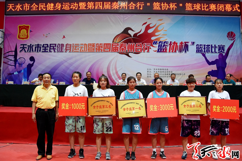 本次比賽歷時4天,共進(jìn)行73場比賽,是我市籃球史上參加人數(shù)最多、比賽場次最多、比賽規(guī)模最大的一次賽事。參賽的35支代表隊,本著友誼、健康、參與的宗旨,經(jīng)過激烈角逐,天河酒業(yè)代表隊奪得男子甲組冠軍,秦州合行代表隊和甘谷全勝俱樂部代表隊分別獲得第二和第三名;岐黃藥業(yè)代表隊奪得男子乙組冠軍,天水師院和天水市衛(wèi)校代表隊獲得第二和第三名;最終天水市體育運(yùn)動學(xué)校代表隊奪得女子組冠軍,天水師范學(xué)院1隊和天水師范學(xué)院2隊獲女子組第二和第三名。比賽還設(shè)體育道德風(fēng)尚獎、優(yōu)秀組織獎、突出貢獻(xiàn)獎,其中武山縣教體局代表隊、新東陽建設(shè)代表隊、天水市公安局代表隊和武警天水支隊代表隊獲得體育道德風(fēng)尚獎;清水縣教體局和天水市衛(wèi)計委代表隊獲得優(yōu)秀組織獎;天水師范學(xué)院和星光房地產(chǎn)有限公司獲得突出貢獻(xiàn)獎。