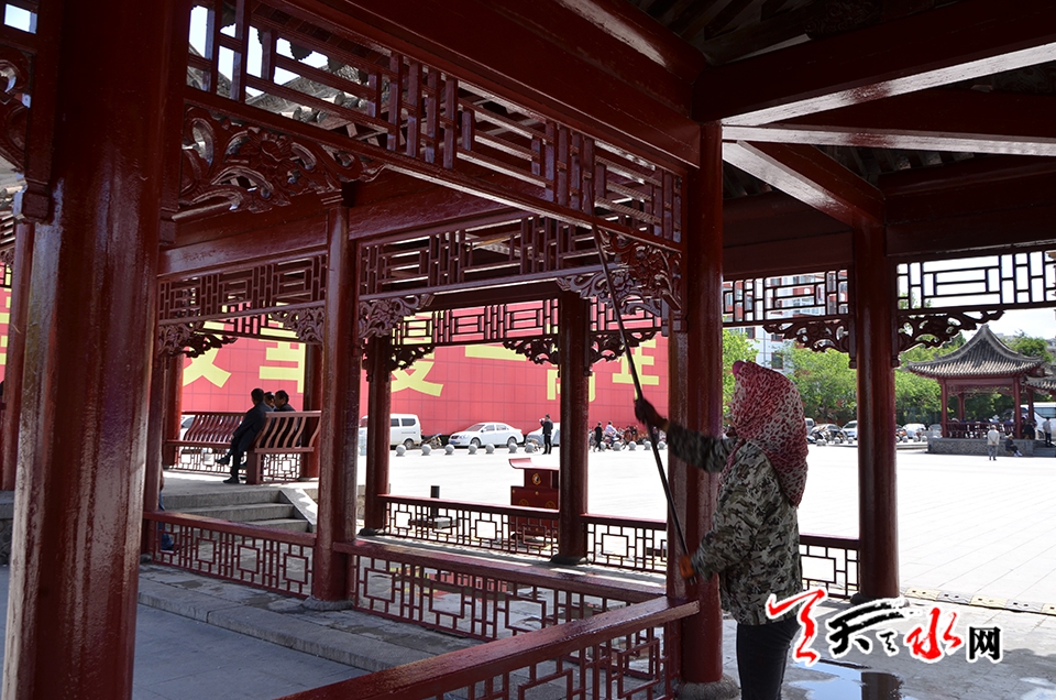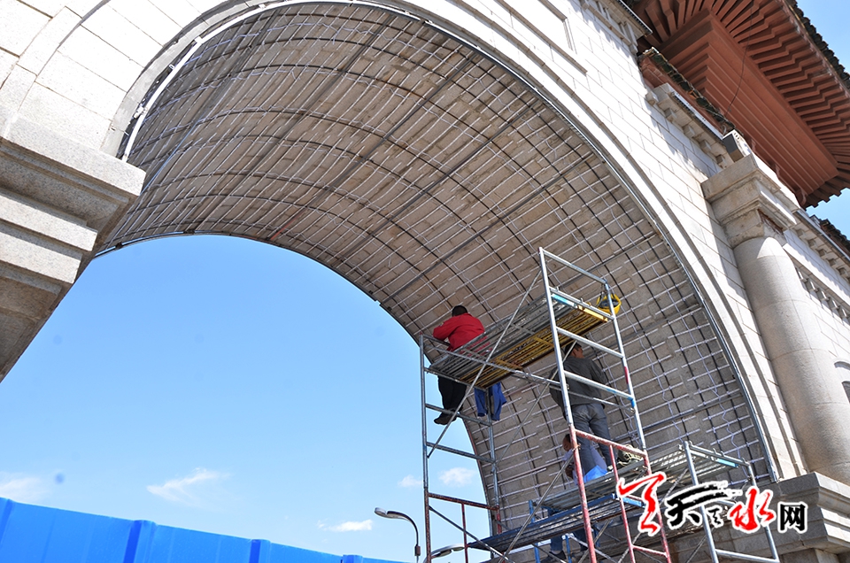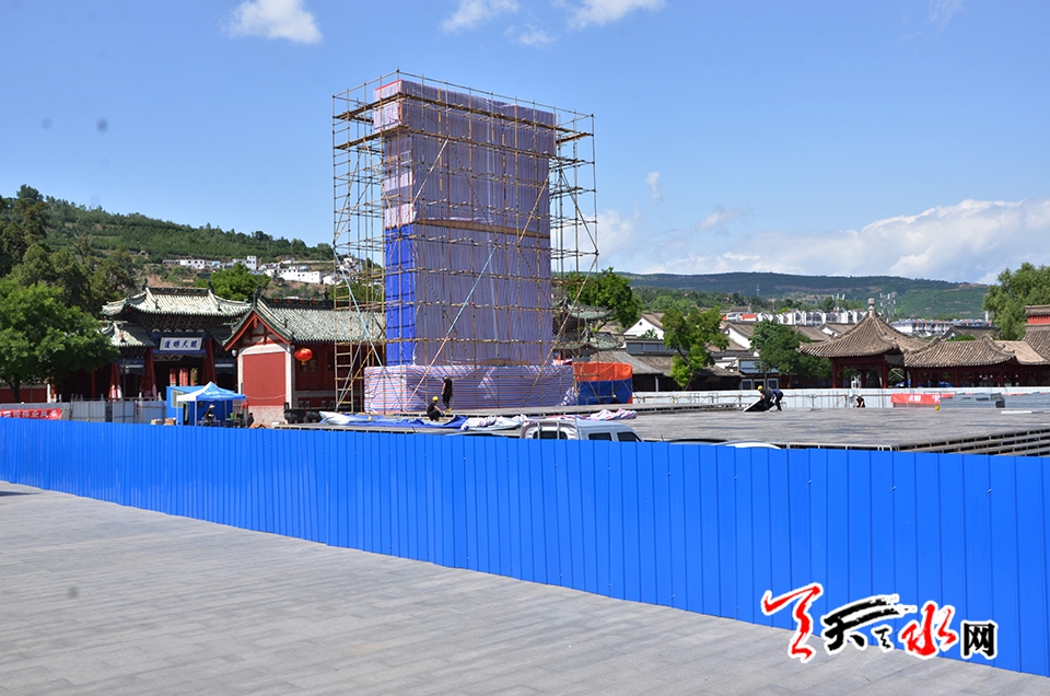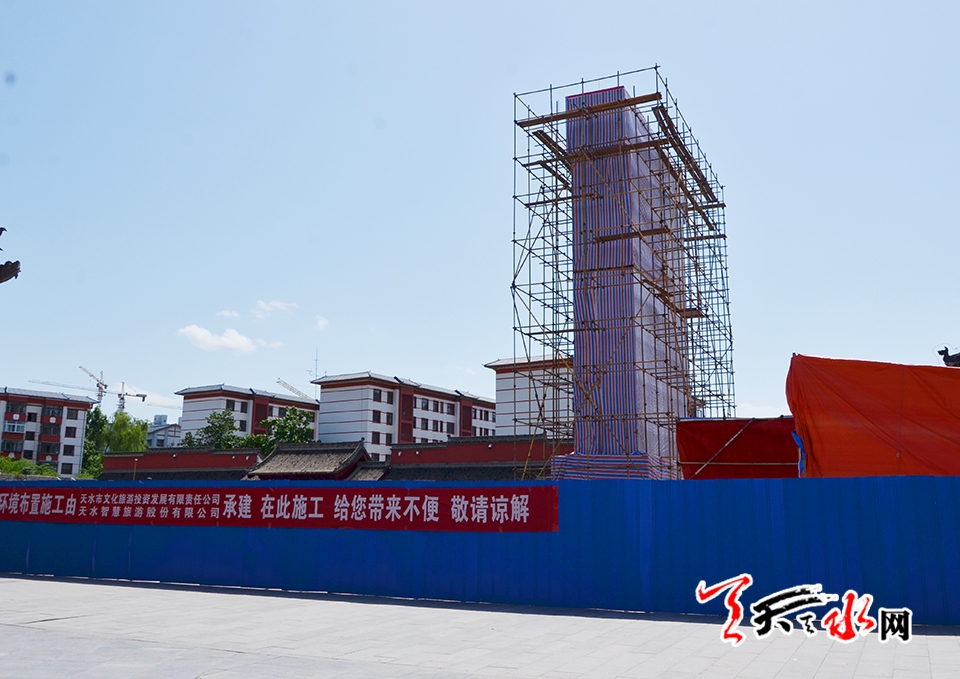 天天天水網(wǎng)訊(見(jiàn)習(xí)記者羅馨)備受關(guān)注的2018(戊戌)年公祭中華人文始姐伏羲大典暨第29屆中國(guó)天水伏羲文化旅游節(jié)即將拉開大幕,6月8日,記者在伏羲廣場(chǎng)主會(huì)場(chǎng)舞臺(tái)搭建現(xiàn)場(chǎng)看到,2018(戊戌)年公祭中華人文始祖伏羲大典祭祀豐碑主體已搭建完畢。