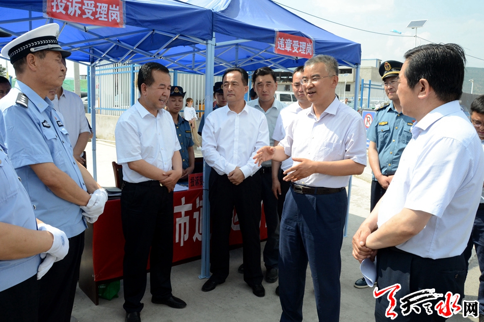 天天天水網(wǎng)訊【記者馬凱】6月20日,市委常委、常務(wù)副市長(zhǎng)趙四輩帶領(lǐng)市交通局、市運(yùn)管局等相關(guān)部門(mén)以及麥積區(qū)政府負(fù)責(zé)人赴天水南站,就節(jié)會(huì)期間天水南站交通服務(wù)保障工作進(jìn)行檢查。