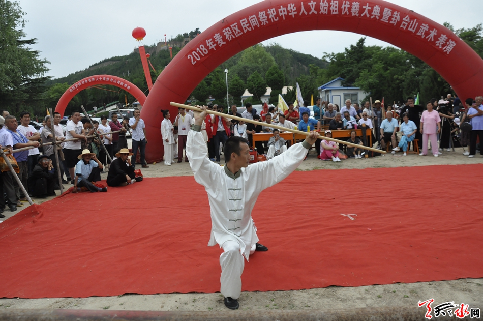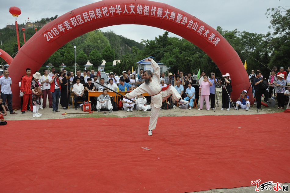 祭祀儀式結(jié)束后,廣大民眾依次進(jìn)入伏羲大殿瞻仰圣容。大典當(dāng)天民眾還自發(fā)的舉行了書法繪畫展覽和卦臺山武術(shù)表演,來自我市的部分書法武術(shù)愛好者一展風(fēng)采,為祭祀典禮增添了靚麗風(fēng)景。