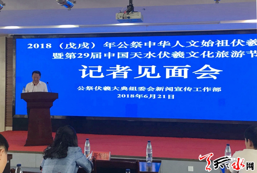 天天天水網(wǎng)訊(記者陳娟)6月21日下午,公祭伏羲大典組委會新聞宣傳工作部在華天電子賓館舉行2018(戊戌)年公祭中華人文始祖伏羲大典暨第29屆中國天水伏羲文化旅游節(jié)記者見面會。