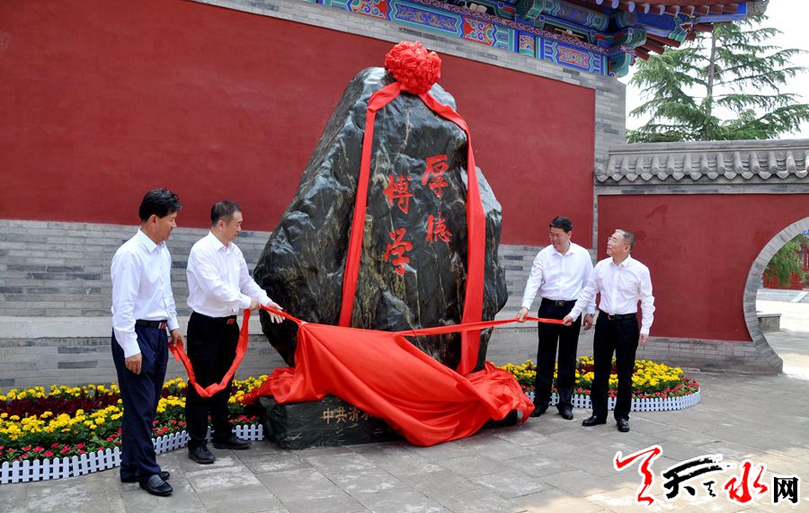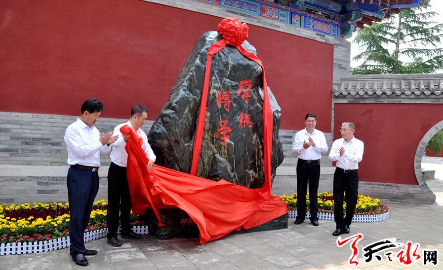天天天水網(wǎng)訊【記者洪野】6月20日,天水市委書記王銳,市人大常委會主任蔣曉強,市委副書記、市長王軍,市政協(xié)主席張明泰來到天水伏羲廟,為伏羲學(xué)院“院訓(xùn)石”揭彩。市領(lǐng)導(dǎo)雷鳴、王正茂、宮輝等一同參加揭彩儀式。