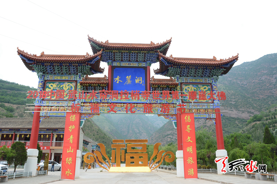 2018中國武山水簾洞拉梢寺世界第一摩崖大佛祈福文化旅游節(jié)將于6月23日在武山縣水簾洞景區(qū)舉行,節(jié)會前夕漫步在在武山水簾洞景區(qū),一個個景點被裝點得繽紛斑斕,一座座樓臺亭廊被打扮得多姿多彩,處處張燈結(jié)彩,煥然若新,洋溢著濃濃的福氣。水簾洞石窟群位于武山縣東北25公里處的榆盤鄉(xiāng)鐘樓村響河溝。曾分布有“七寺”(千佛寺、拉梢寺、顯圣寺、磚瓦寺、硬屲寺、觀臺寺、粉團寺)“五臺”(蓮花臺、清凈臺、說法臺、鐘樓臺、鳴鼓臺)等古遺跡,現(xiàn)僅存了顯圣池、水簾洞、拉梢寺和千佛洞四個單元。水簾洞石窟于十六國后秦時開創(chuàng),歷經(jīng)北朝、隋、唐、五代、宋、元、明、清等朝代的不斷續(xù)鑿和新建,現(xiàn)保存有歷代窟龕69個,造像160余身、浮雕42幅、壁畫(彩繪)2440平方米,古建筑8座、舍利塔12座、碑刻題記27方、無頭干尸一具,其它遺物60余件。1961年公布為省級文物保護單位,2001年公布為全國重點文物保護單位,2007年列入絲綢之路世界文化遺產(chǎn)備選點,2013年評定為國家AAAA級旅游景區(qū)。