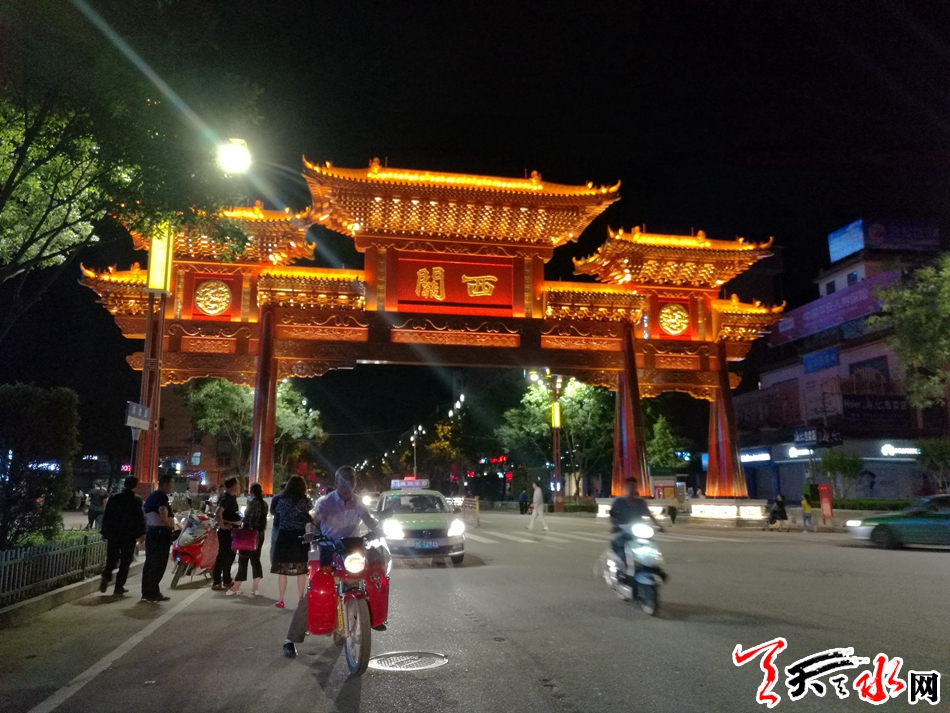 新落成的西關(guān)牌坊璀璨奪目、蔚為壯觀。 周文濤 攝