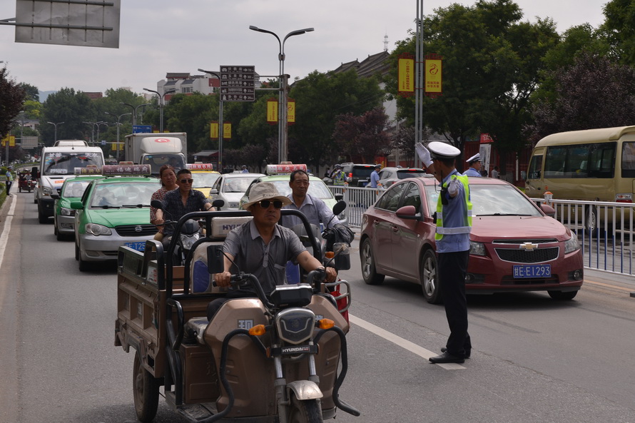 此次公祭伏羲大典活動規(guī)格高、來賓多,備受社會矚目。為保證公祭伏羲大典順利舉行,天水公安交警部門出動600余名警力,以“伏羲廣場”為核心圈,以秦州城區(qū)為內(nèi)圈,以五縣兩區(qū)為外圈,采取遠端分流、近端管控、核心區(qū)管制的勤務(wù)方式,扎實做好各項道路交通安全管理工作。