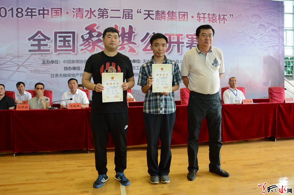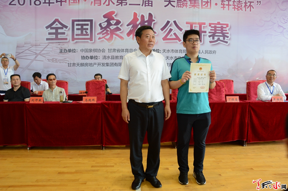 天天天水網(wǎng)訊 (見習(xí)記者崔文濤 羅馨 )2018年中國·清水第二屆“天麟集團(tuán)·軒轅杯”全國象棋公開賽經(jīng)過四天13輪次的激烈比賽,于6月30日上午在甘肅省清水縣職工培訓(xùn)中心鳴金收兵。趙子雨獲得冠軍,申鵬獲得亞軍,曹巖磊獲得季軍。