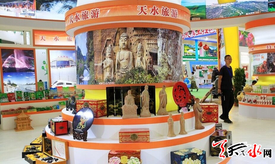 天水展區(qū)中,天水特色農(nóng)產(chǎn)品,天水雕漆等特色工藝品吸引了眾多參觀者駐足。