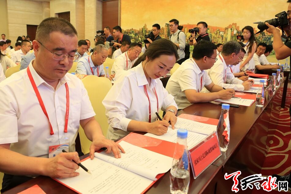 省政協(xié)副主席、天水市委書(shū)記王銳在簽約儀式上致辭,市人大常委會(huì)主任、市委秘書(shū)長(zhǎng)蔣曉強(qiáng)主持簽約儀式,市委常委、副市長(zhǎng)宮輝作主題推介。