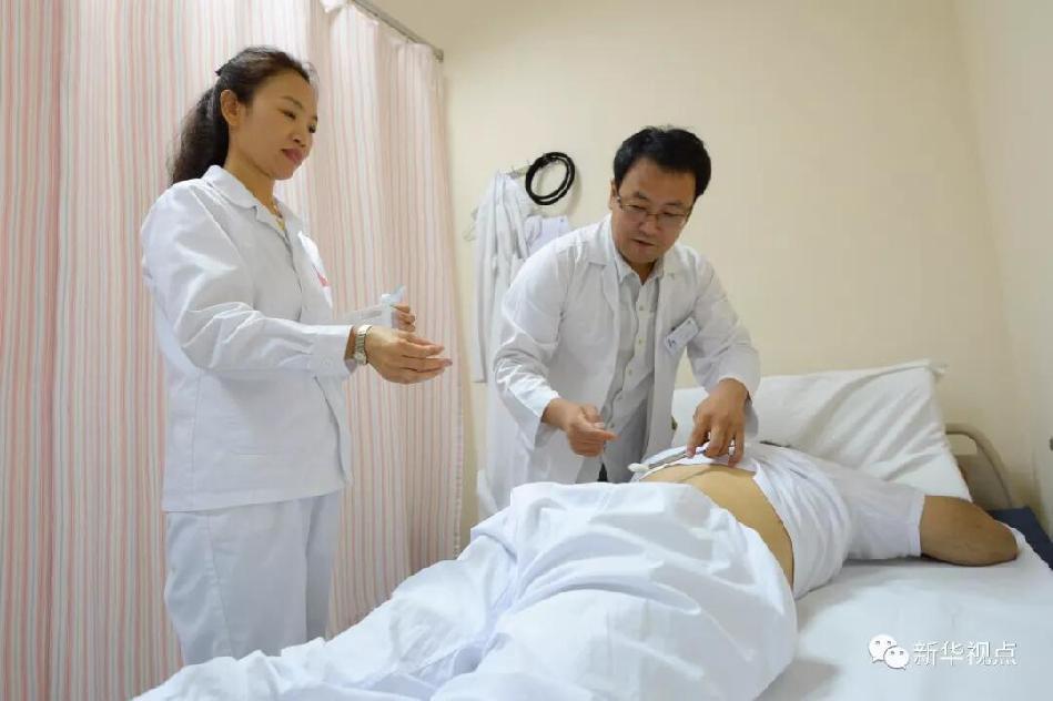 2017年8月10日,在科威特城,中國援科醫(yī)療隊員為當?shù)鼗颊哌M行針灸治療。從1976年開始,中國政府向科威特共派遣了11批醫(yī)療隊。新華社發(fā)諾法勒攝