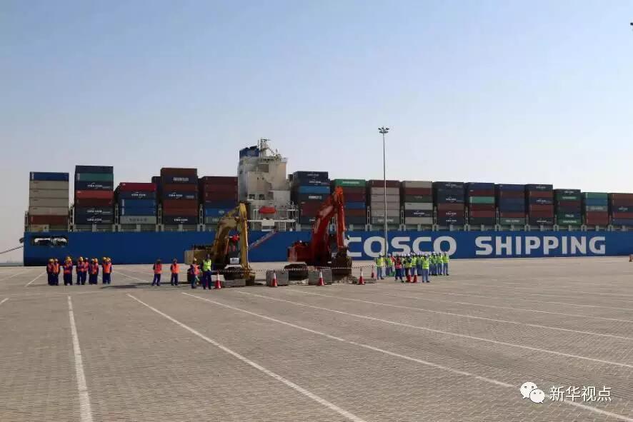 ↑2017年11月5日在阿聯(lián)酋拍攝的中遠(yuǎn)海運(yùn)港口阿布扎比碼頭正式動(dòng)工暨場(chǎng)站租賃簽約儀式現(xiàn)場(chǎng)。 新華社記者蘇小坡攝