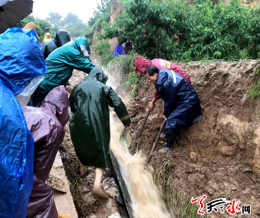 7月10日,秦安縣興國鎮(zhèn)干部群眾冒雨在隱患點搶險。