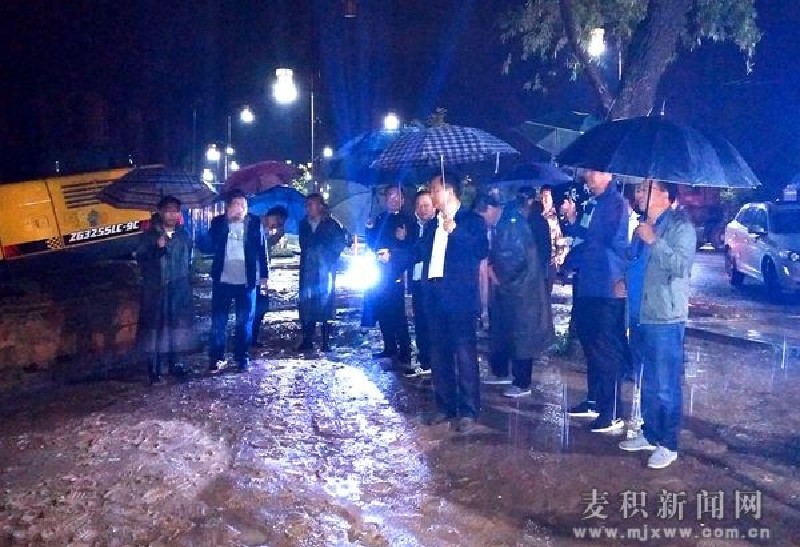 7月10日,麥積區(qū)主要領(lǐng)導(dǎo)現(xiàn)場查看行洪狀況及隱患點搶險情。