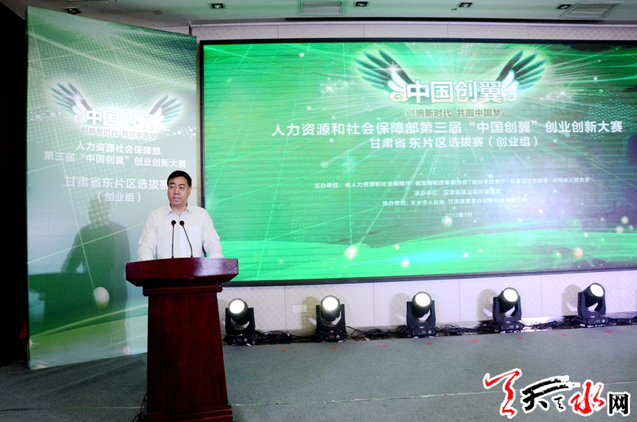 天天天水網(wǎng)訊【記者閆波】7月10日,第三屆“中國創(chuàng)翼”創(chuàng)業(yè)創(chuàng)新大賽甘肅賽區(qū)選拔賽(創(chuàng)業(yè)組)在我市舉行。市政府黨組成員逯克宗出席開幕式并致辭。