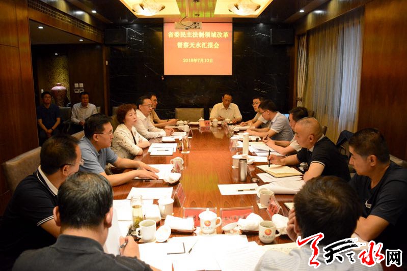 天天天水網(wǎng)訊(記者胡麗霞)7月9日至11日,省委民主法制領(lǐng)域改革專項小組組成督察組,由省政協(xié)民族宗教委員會副主任蘇武同志帶隊前來我市,就《政協(xié)建議案和調(diào)研視察報告辦理暫行辦法》等三個文件貫徹落實(shí)情況,開展專項督查。