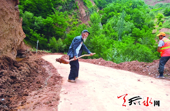 盛夏的一天,見(jiàn)到何增德老人時(shí),他正揮舞著鐵鍬,跟村里的保潔員一起在臥駝至山坪的道路上維修因暴雨受損的涵洞。隊(duì)伍中,身材削瘦、銀發(fā)白須的他顯得尤為引人注目。