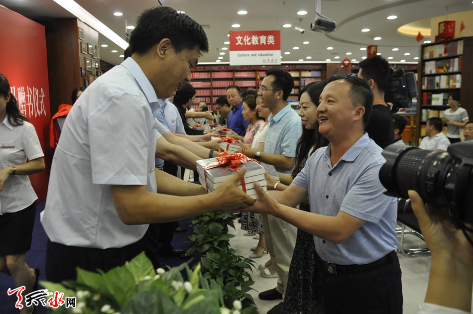 ????天水市一中、麥積區(qū)圖書館、麥積區(qū)新陽鎮(zhèn)王家莊等24家學校、單位在儀式上接受了贈書。