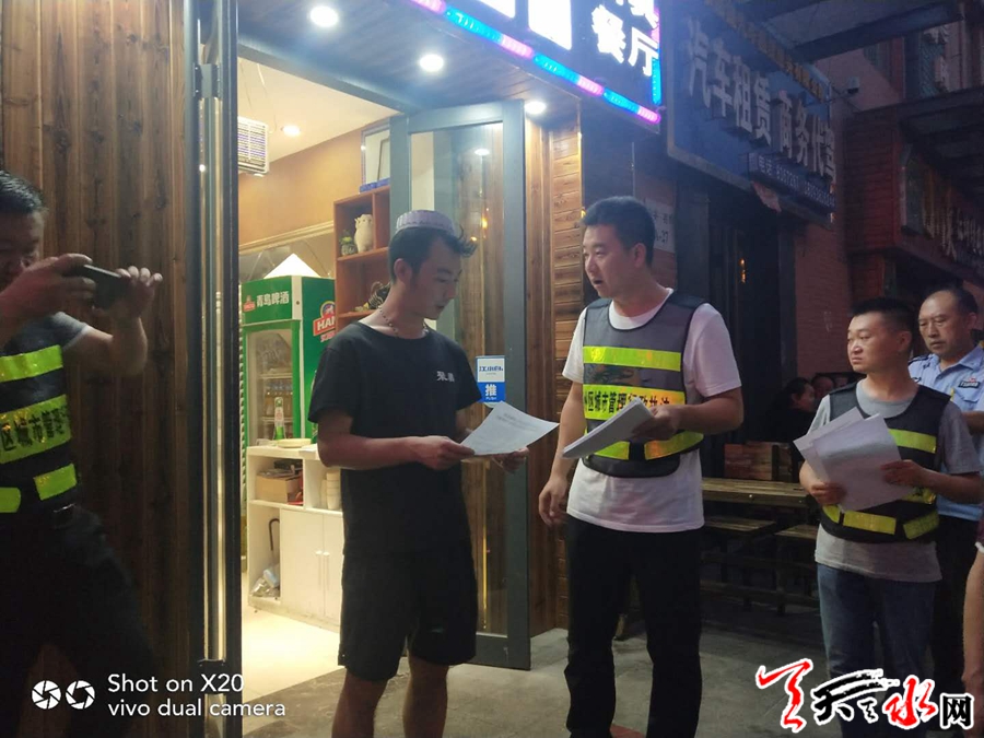 7月24日晚7時(shí)整,20名選派干部在執(zhí)法局的統(tǒng)一組織下,主動(dòng)請(qǐng)戰(zhàn),以干代訓(xùn),攜帶各類宣傳資料,奔赴羅玉小區(qū)、永慶路、大眾南路和雙橋中路,走街串巷、進(jìn)店入戶,為即將開(kāi)展的早上、夜間市容集中整治宣傳造勢(shì)。
